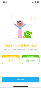 Sau khỉ tải app Duolingo cho iPhone , thì tôi bắt đầu buổi học đầu...